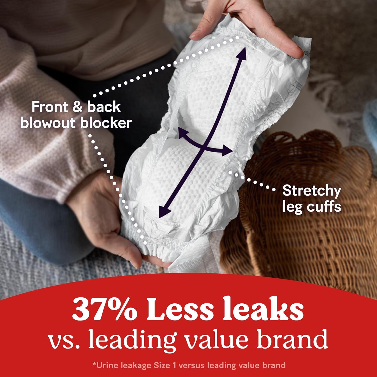 - Up to 100% Blowout & Leak Protection: Our baby diapers are designed with Huggies Leak Lock System that offers up to 12 hours of leak protection