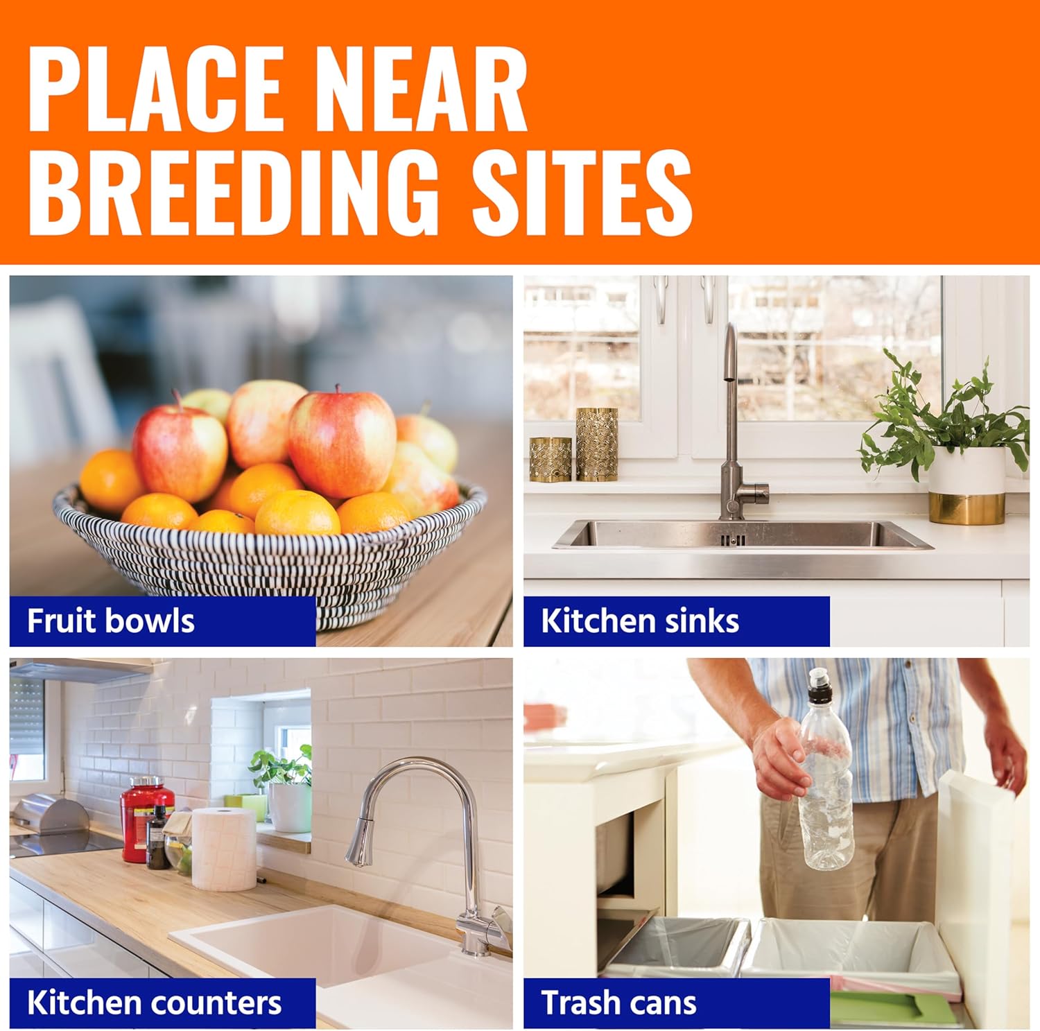 - TARGET BREEDING AREAS: These indoor fruit fly traps are most effective when placed near fruit bowls, trash cans, and counters to control fruit fly breeding locations